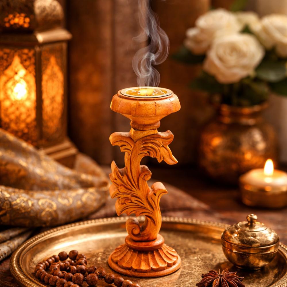 مبخرة مصنعة من خشب أشجار طبيعية (خشب التك عالي الجودة).مصنعه يدوياً 100٪ شكل فاخر جذاب.لاتتأثر بالحرارة جودة عالية وشغل يدوي محترف.